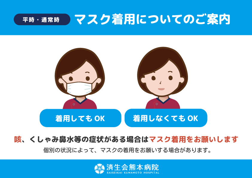 - マスク着用は患者さん、面会者、職員ともに個人の判断とします
