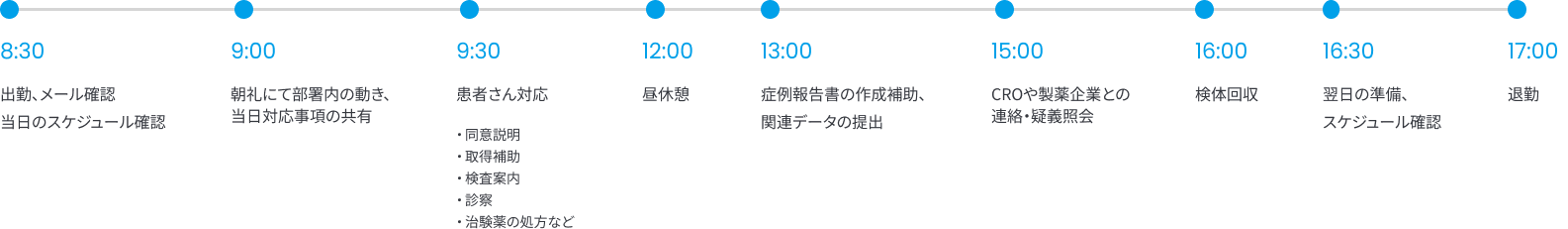 - 患者さんの来院調整、スケジュール管理