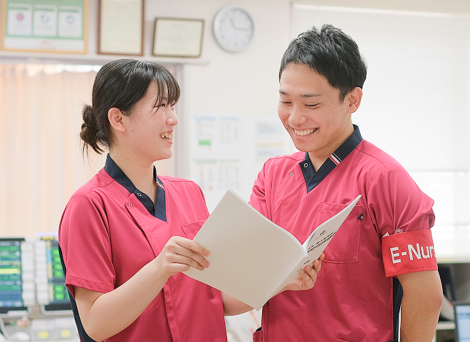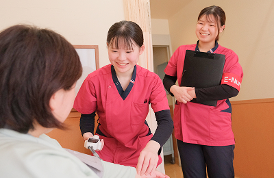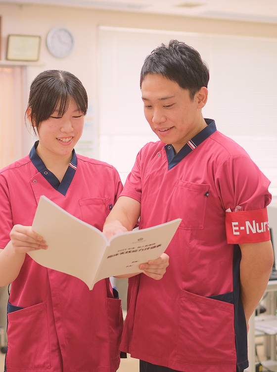 「やさしさとぬくもりのある質の高い看護」を理念に、入院前から退院後を見据え、地域とも連携を図り、継続看護を目指したチーム医療を実践しています。また、教育体制も充実しており、安心して成長できる環境を整えています。