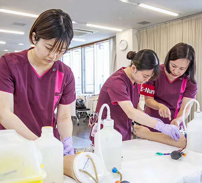ベテラン看護師が基本的看護技術の習得をサポートします。