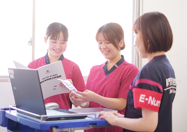 また、毎月の疾患レポートや臨床実践能力評価表を通じて、段階的に知識や技術を身につけていくことが出来るため、安心して学ぶことができ、患者さんに対する安全なケアの提供に繋がっていると思います。