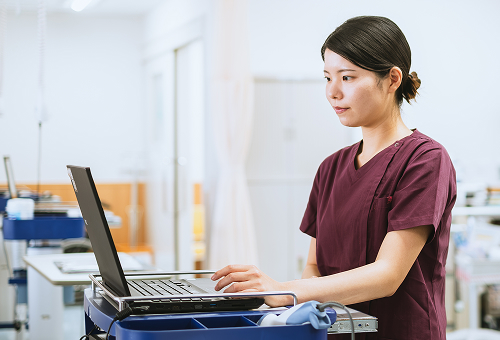 医療情報部は、医療DXの推進や業務改善、医療の質向上に取り組む部署です。ここでは看護師も活躍しており、専門性を活かして診療現場とシステムをつなぐ役割を担います。クリニカルパスの作成・分析、看護記録の二次活用、スマホを使った業務効率化などを多職種と協働で進めています。