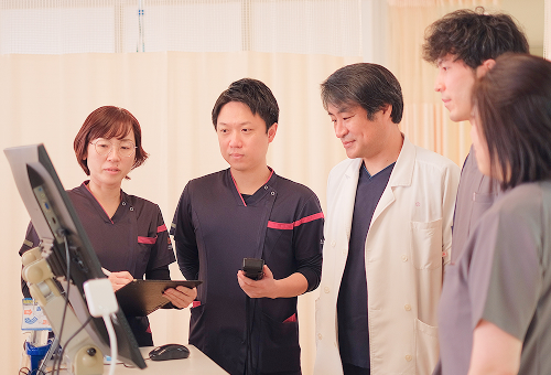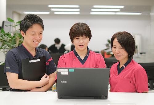 事務部門や様々なコメディカルで構成されたチームで、現場の声に耳を傾けながら業務改善に取り組み、働き続けることのできる職場づくりを目指しています。
