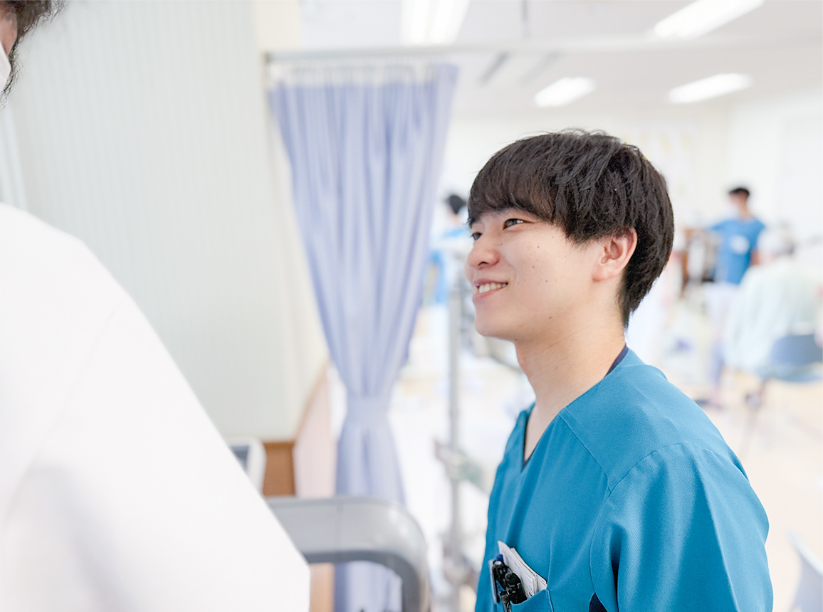 学生時代、当院に臨床実習でお世話になった際、スタッフの皆さんが常に高い向上心を持って診療に取り組まれている姿に感銘を受けました。院内勉強会やメンター制度など教育体制も充実しており、自分自身が成長できる環境だと感じたことがきっかけです。また、これまで回復期病院で勤務してきましたが、高度医療や救急医療を担う済生会熊本病院で、より幅広い経験を積み、理学療法士としてさらに成長したいと考えたことも大きな理由です。