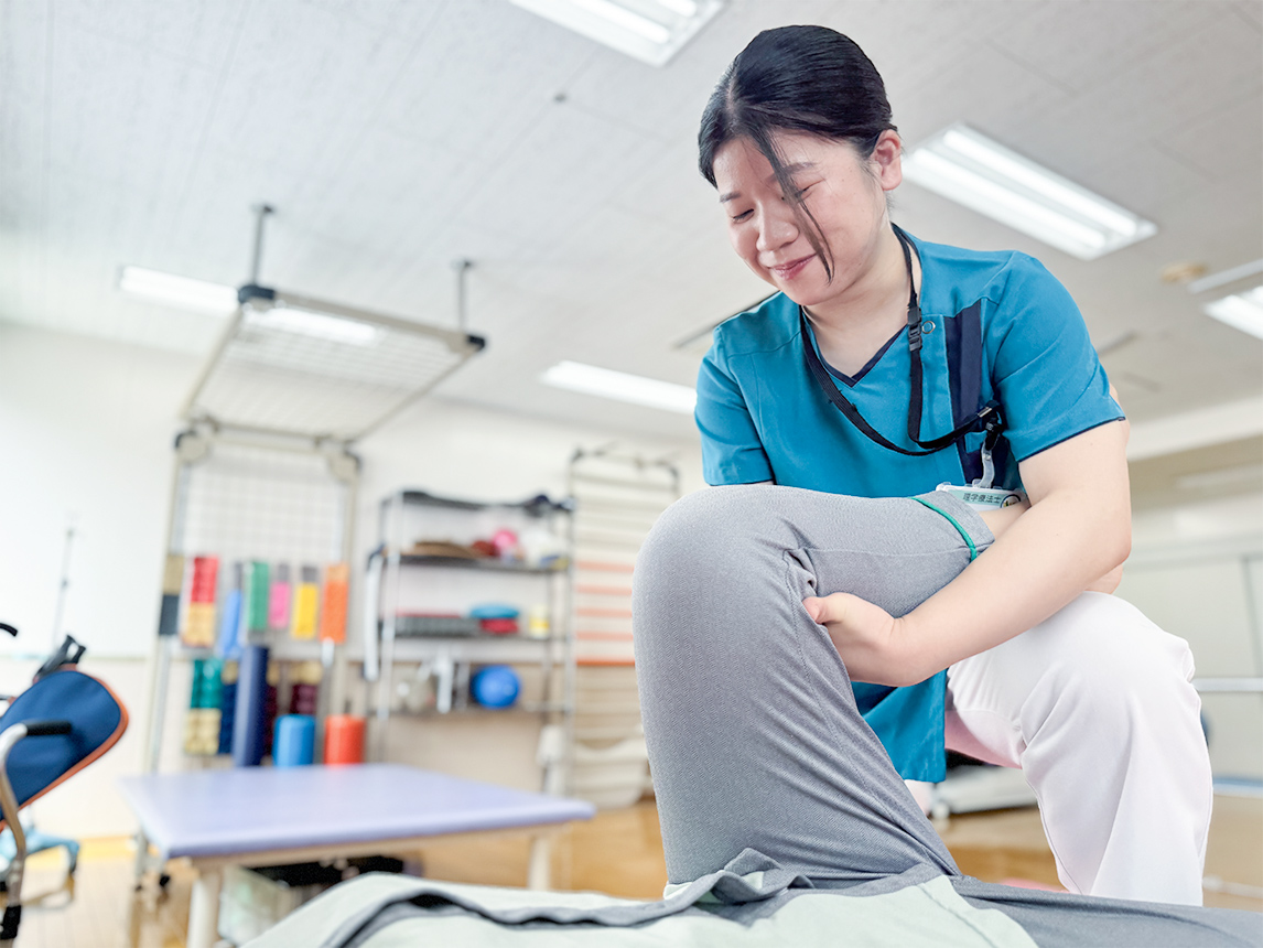 現在は救急チームに所属し、入院直後から早期離床や機能回復を担っています。急性期は身体の変化が大きく、毎日が緊張の連続ですが、その中で全身状態を把握し、リスク管理を徹底しながらリハビリに取り組んでいます。リハビリの期間は限られていますが、その中で患者さんが少しずつできることを増やしていく姿を支えられること、一緒に喜べることにやりがいを感じています。急性期ならではの魅力を実感しつつ、これからも学びを重ねて新しいやりがいを見つけていきたいです。