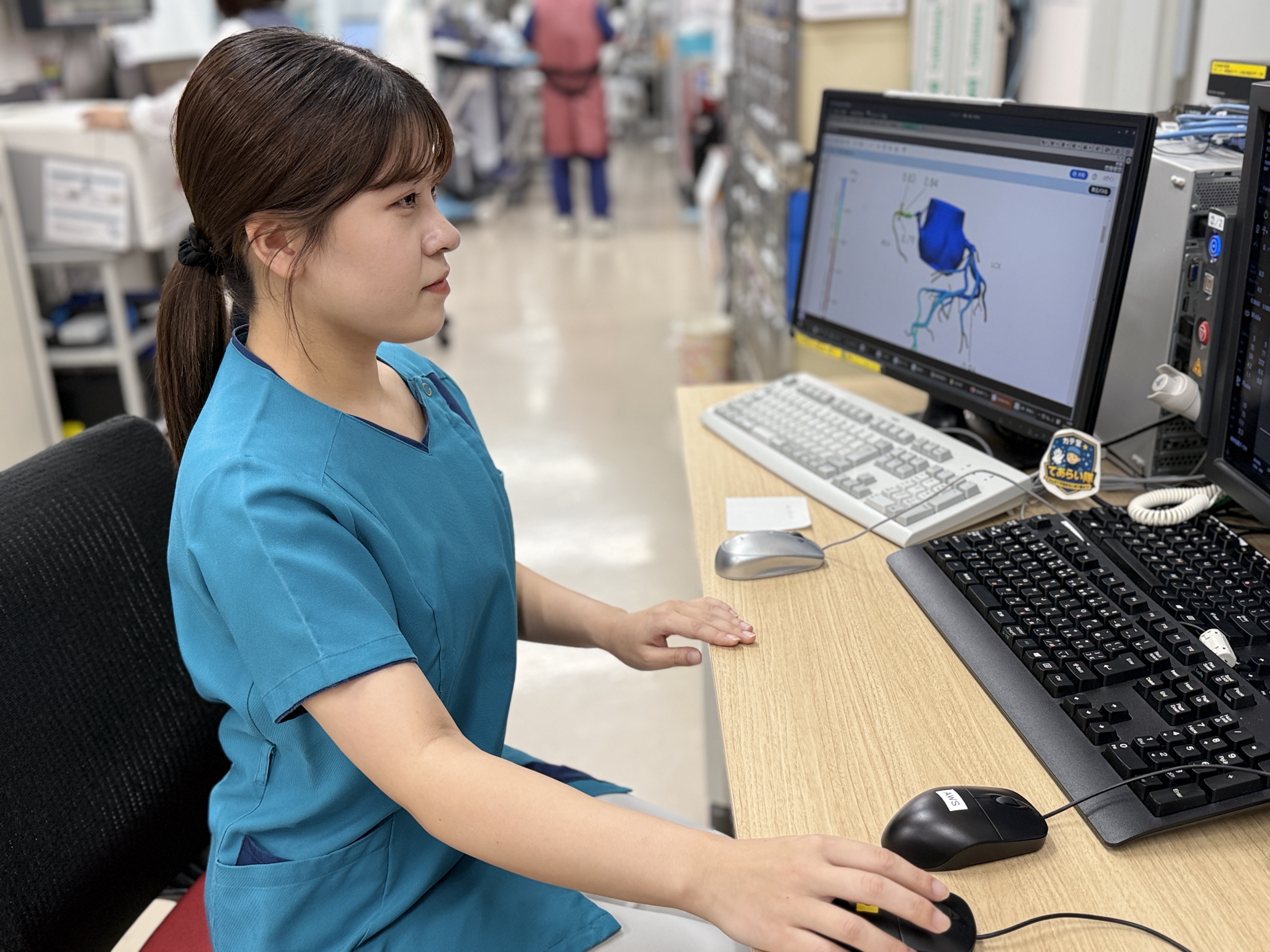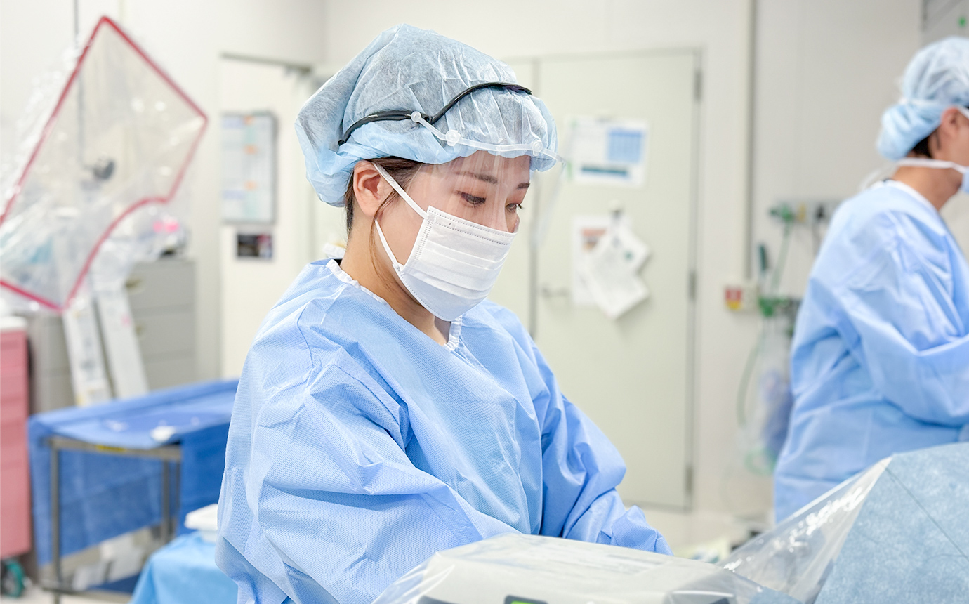 血管造影と一般撮影の業務をしています。血管造影室ではカテーテル検査・治療の業務を行っています。他のモダリティと違い、医師や看護師、臨床工学技士など他職種と関わっており、コミュニケーションを大切にしながら放射線分野だけでなく多くのことを学ばせていただいています。最適な画像を提供し、医師の手技のサポートをすることで治療に貢献できることや、治療が終わったあとに先生や患者さんから「ありがとう」と言っていただけることに大きなやりがいを感じています。