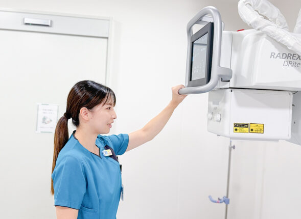 放射線検査は診断や治療の基盤となる大切な業務です。一般撮影(レントゲン撮影)やCTなどの検査を通じて、患者さんの不安を和らげながら、正確な情報を提供することを心がけています。特に「ありがとう」と声をかけていただいた時や、自分の迅速な対応が診断や治療に直結したと実感できる時に、大きなやりがいを感じます。子育て中でも患者さんやチームに貢献できていることが、自分のモチベーションにつながっています。