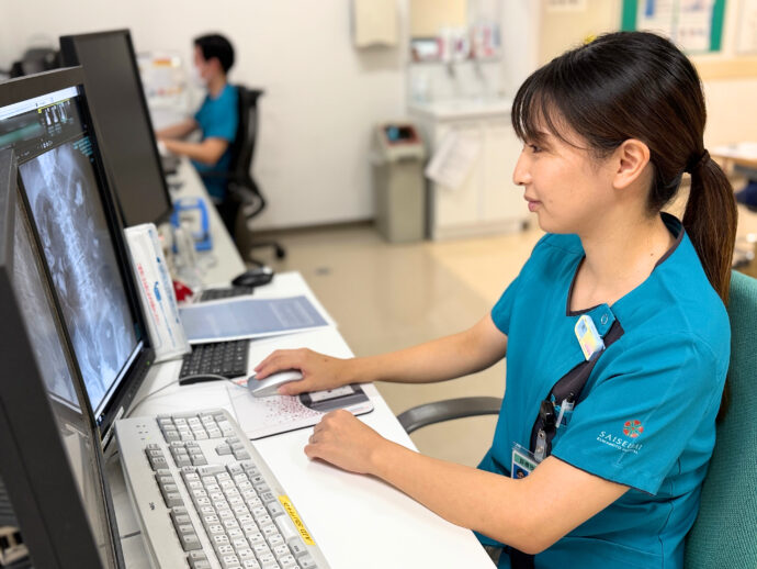 「患者さんに安心して検査を受けてもらうこと」を第一に考えています。検査の精度やスピードはもちろん大切ですが、それ以上に不安を抱える患者さんに寄り添った声かけや説明を心がけています。また、子育て中ということもあり、限られた時間の中で効率的に動き、チームと協力し合う姿勢を大事にしています。仲間と支え合いながら質の高い検査を提供し続けることが、自分の役割だと思っています。