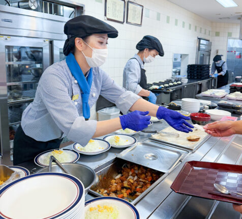 職員食堂の献立作成・調理・接客業務を担当しています。