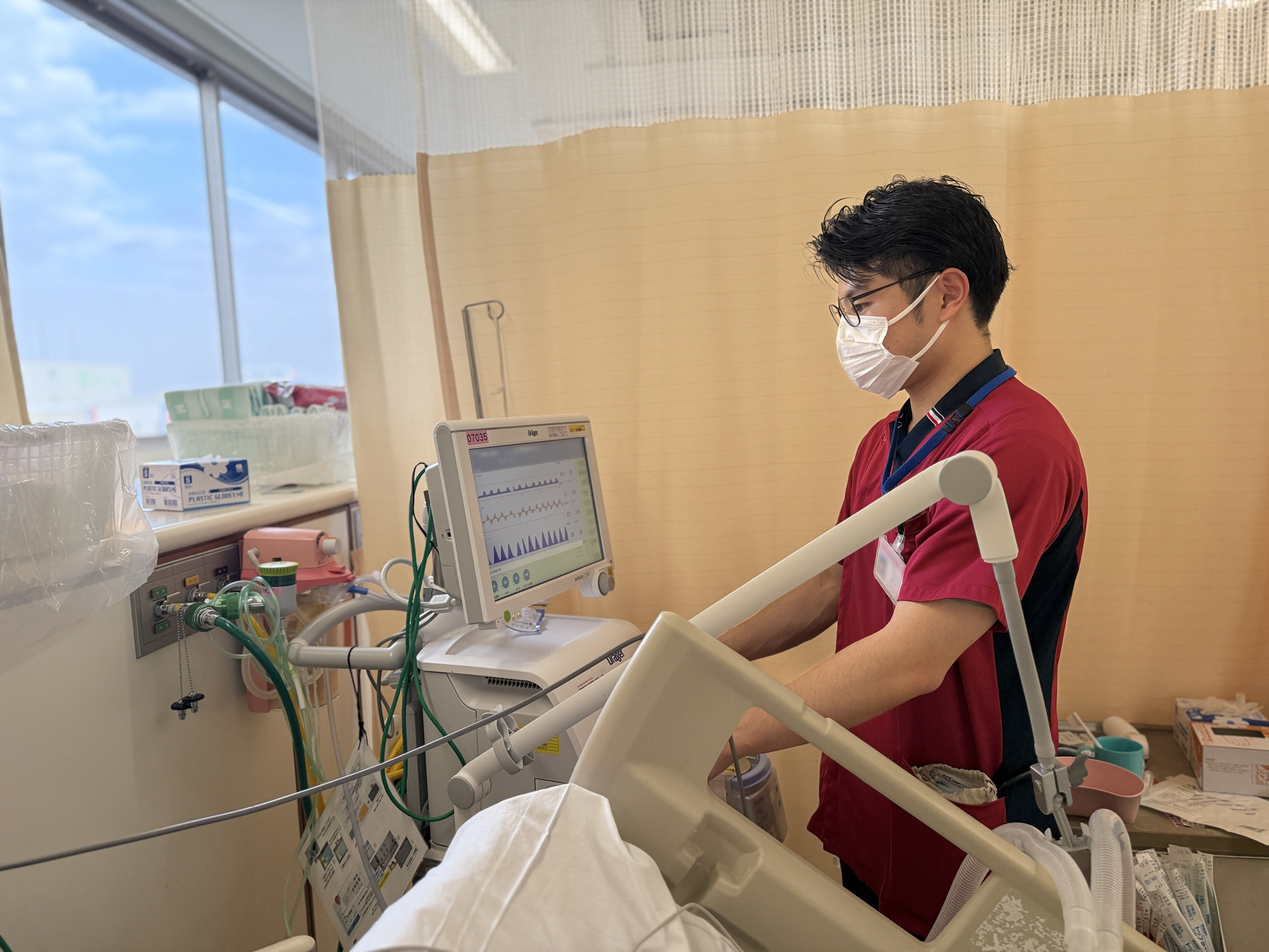 私の所属するEHCUという部署では脳卒中や心筋梗塞などの重症度や緊急性の高い病気になった方が入院する集中治療室です。治療を受けられ、状態が安定するまでの間、合併症の早期発見や急変時に素早く対応できるような看護ケアを行っています。やりがいを感じることは、看護ケアを行い患者さんへのケアがうまくできた際に「ありがとう」といった感謝の言葉をいただけることがあります。その際に看護師をやっていてよかったとやりがいを感じます。