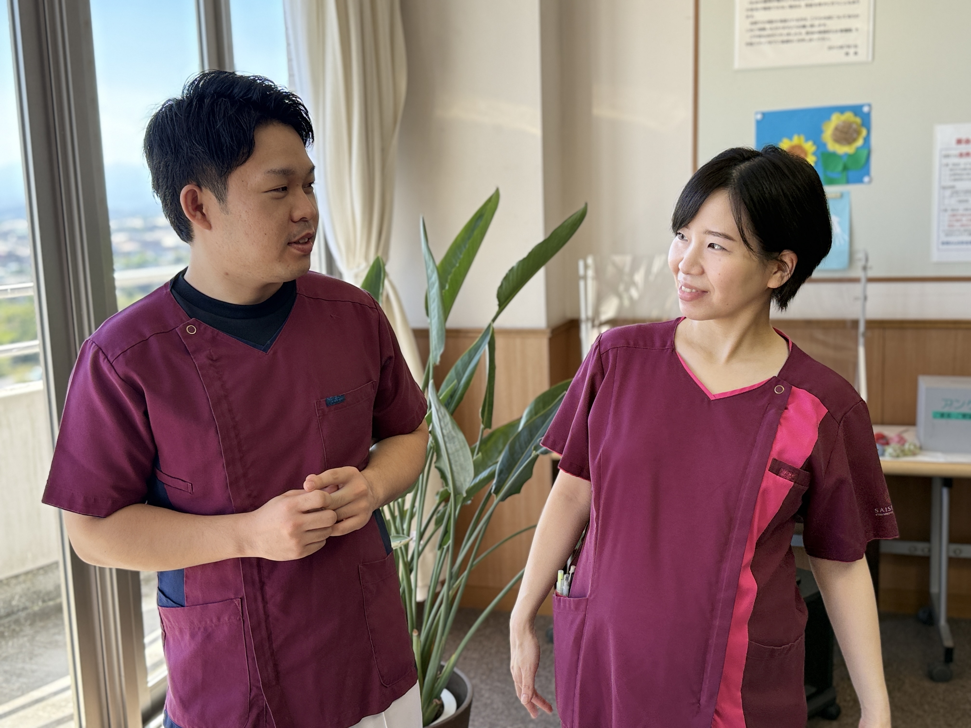 入職して8年目になりますが、常に初心を忘れず、基本である言葉遣いや身だしなみなどの接遇面に配慮することを心がけています。患者さんの身体的ケアはもちろんのこと、ご家族を含めた精神的ケアができるよう常に寄り添う気持ちを大切にし、退院後も患者さん・ご家族が安心した生活を送れるようチーム医療を発揮しながら関わっていくことを意識しています。