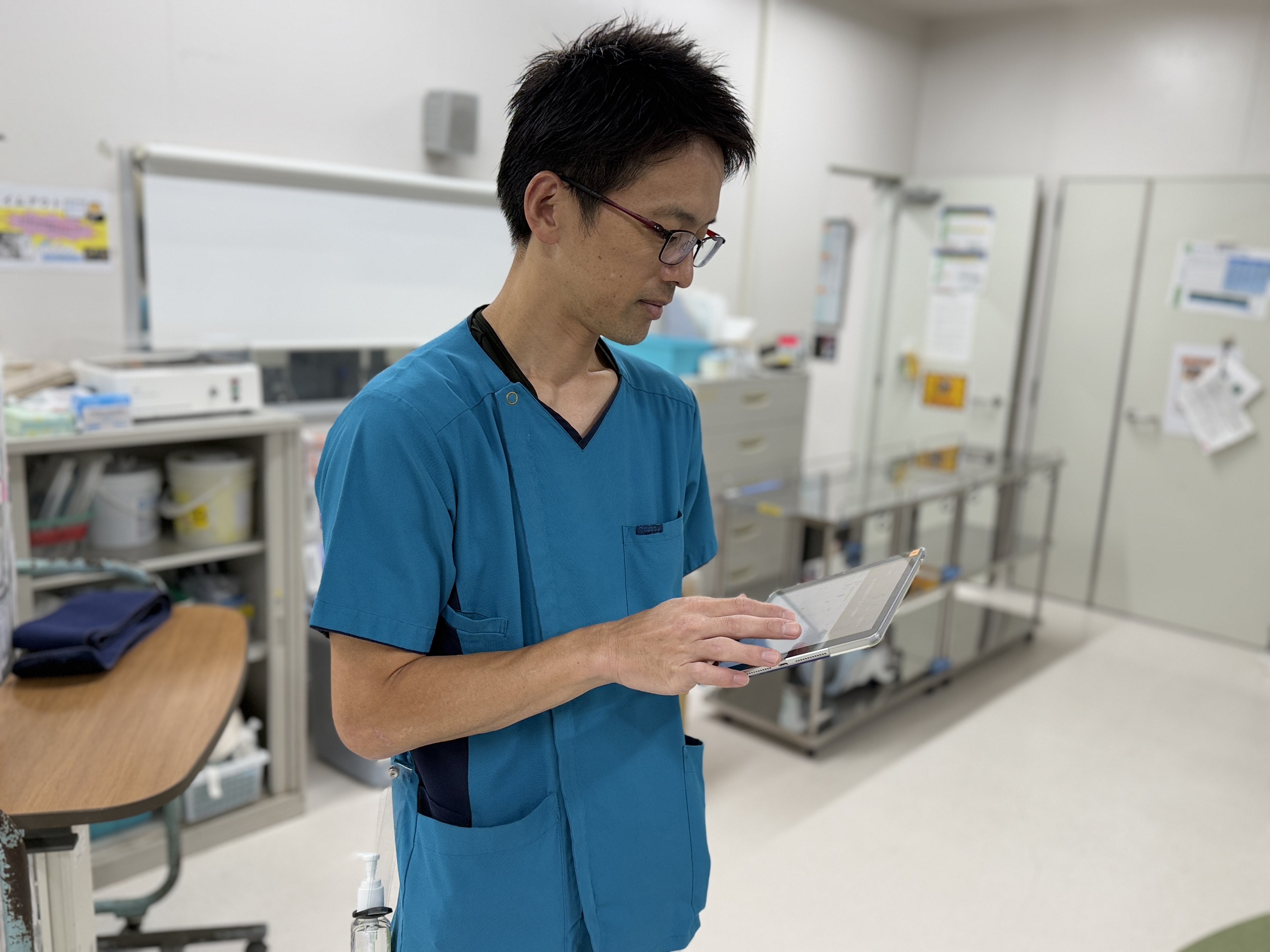 技士は、機器を通して患者さんと向き合う場面が多いからこそ、目の前にいる患者さんに寄り添う姿勢を大切にしています。また、「現状維持は後退」という言葉を忘れず、昨日の自分を超えることを意識しながら、日々の成長を目指しています。アインシュタインの「情報は知識ではない。唯一の知の源は経験である」という言葉にも共感しており、自ら経験を積むだけでなく、医療の質と安全を確保したうえで、後輩にも積極的に症例経験を積ませることで育成に取り組んでいます。