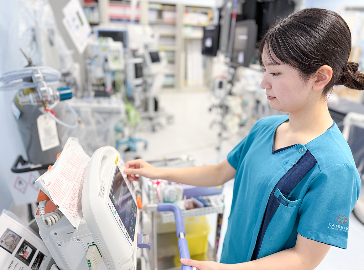学生時代に当院の臨床実習に参加した際、職場の雰囲気が明るく、スタッフの皆さんがいきいきと働いている姿が印象的でした。最先端の医療機器が導入されており、臨床工学技士が人工心肺業務、血液浄化業務、カテーテル治療業務など幅広い分野で活躍できる環境が整っていると感じました。また、教育体制も充実しており、専門性を高めながら成長できる点に魅力を感じ、志望しました。