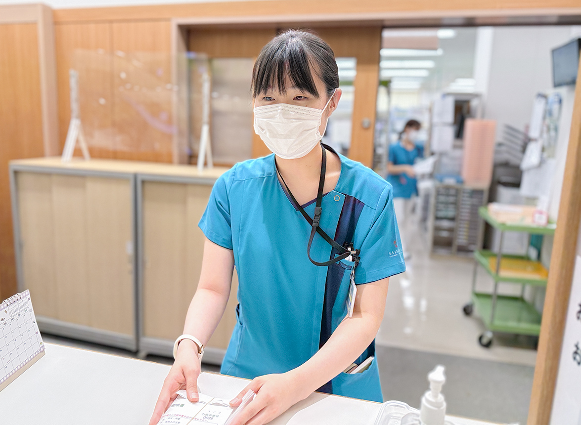 済生会熊本病院を選んだ理由は、まず診療科が多く幅広い症例を経験できる点に魅力を感じたからです。また、新人教育が充実しており、先輩方による講義などを通じて基礎から学べる体制が整っていることも安心につながりました。さらに薬剤師数が多く、多様な先輩方の考え方や経験に触れられる環境で成長できると感じ、入職を決めました。
