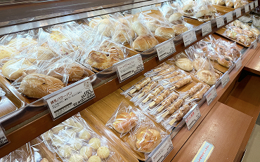 済生会熊本福祉センターに所属する障がいを持つ方々が支援スタッフと一緒にベーカリーで働いています。店内で作る焼き立てパンが人気です!職員は全品5%OFFで購入できます♪